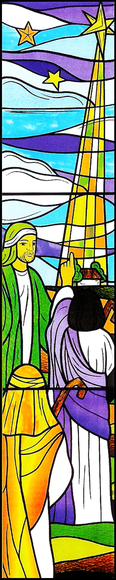 3매가 1세트인 대형성화 그라스벨입니다. 모양과 크기가 다양한 건축물의 창문에 대형성화 패턴은 효과적일 것입니다. 대형성화는 기본형의 2매, 3매, 4매, 5매, 10매가 각각 세트로 구성되어 있으며 주로 인물성화를 다루어 다양한 시각적, 심미적인 효과를 주어 어린아이부터 노인까지 그리스도의 메시지를 전달 받을 수 있도록 고안된 제품입니다. 설명이 충분히 들어간 디자인이므로 주로 중심에 대형성화를 배치하여 주제로 사용하고 주변은 모자이크 패턴을 사방으로 연결하여 시공합니다.