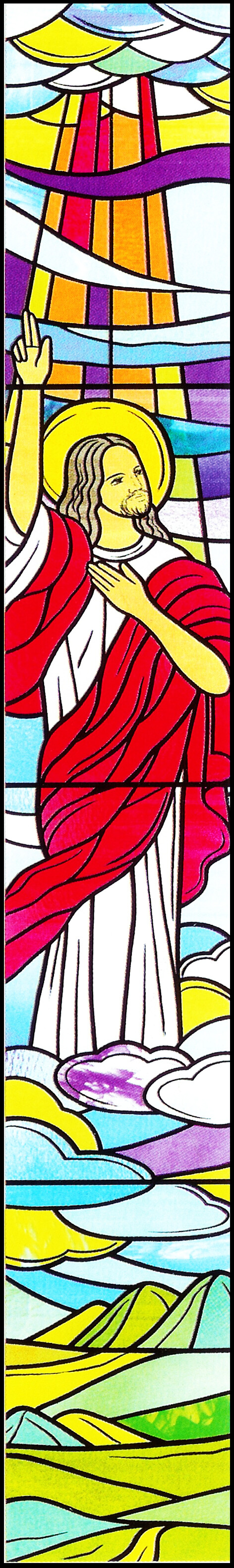 4매가 1세트인 대형성화 그라스벨입니다. 모양과 크기가 다양한 건축물의 창문에 대형성화 패턴은 효과적일 것입니다. 대형성화는 기본형의 2매, 3매, 4매, 5매, 10매가 각각 세트로 구성되어 있으며 주로 인물성화를 다루어 다양한 시각적, 심미적인 효과를 주어 어린아이부터 노인까지 그리스도의 메시지를 전달 받을 수 있도록 고안된 제품입니다. 설명이 충분히 들어간 디자인이므로 주로 중심에 대형성화를 배치하여 주제로 사용하고 주변은 모자이크 패턴을 사방으로 연결하여 시공합니다.
