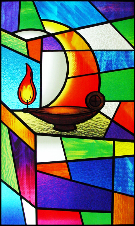 그림문자성화 패턴의 그라스벨입니다. 그리스도교에서는 구약 시대부터 많은 심볼들을 사용하고 있습니다. 이 심볼들은 동물이나 식물, 각종 도구들을 단순하게 양식화하여 마치 문자처럼 보다 쉽게 말씀의 의미를 전달하기 위하여 쓰입니다. 그림문자성화 패턴은 중심에 상징들을 배치하고 배경을 모자이크 패턴으로 디자인한 제품입니다. 창문의 크기와 모양에 상관없이 모자이크 패턴의 그라스벨과 자연스럽게 연결하여 사용할 수 있으며 교회뿐만 아니라 현대 건축물, 조립식 건물 등 어디에나 잘 어울리는 제품입니다.