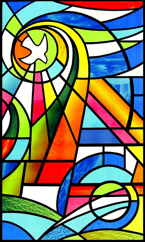 인물성화 패턴의 그라스벨입니다. 예수의 탄생부터 기적의 행적, 고난과 돌아가심, 부활, 승천까지의 일대기를 구상적으로 표현한 제품입니다. 비교적 설명이 충분히 들어간 디자인이므로 성도들이 실제 상황의 느낌을 가질 수 있도록 제작된 패턴이며, 주로 중심에 인물성화를 배치하여 주제로 사용하고 주변은 모자이크 패턴을 사방으로 연결하여 시공합니다.
