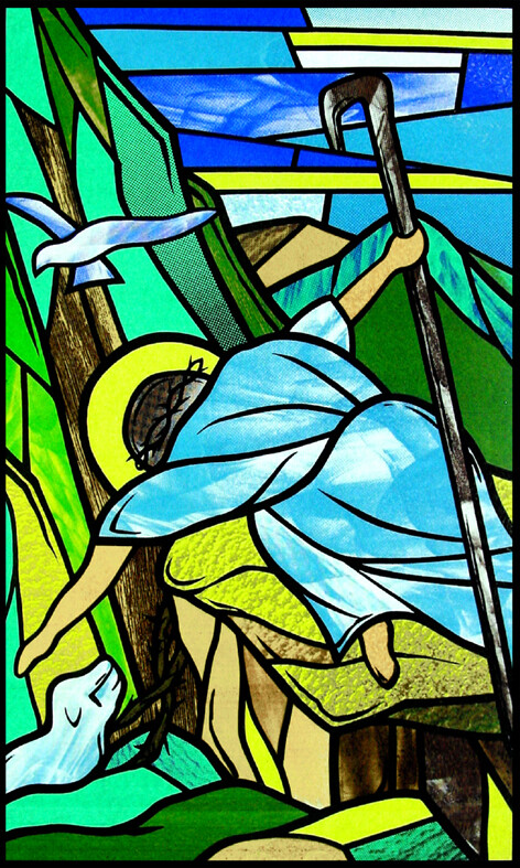인물성화 패턴의 그라스벨입니다. 예수의 탄생부터 기적의 행적, 고난과 돌아가심, 부활, 승천까지의 일대기를 구상적으로 표현한 제품입니다. 비교적 설명이 충분히 들어간 디자인이므로 성도들이 실제 상황의 느낌을 가질 수 있도록 제작된 패턴이며, 주로 중심에 인물성화를 배치하여 주제로 사용하고 주변은 모자이크 패턴을 사방으로 연결하여 시공합니다.
